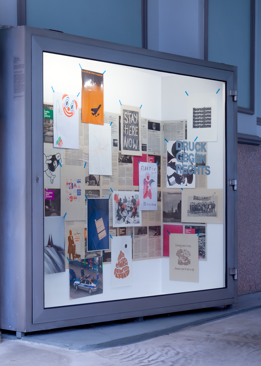 Ina Wudtke, Besorgte Bauhäusler*innen, David Lieske, Raul Walch, Tiziana Jill Beck, anschlaege.de, Andy Warlord, Christian Werner, Frankfurter Hauptschule, Schroeter & Berger, Bernd Langer / Kunst und Kampf, Lars Karl Becker & Daniela Kneip Velescu, Lukas Liese, Wolfgang Müller, Jake Kent, Alex Solman, Christian Vagt